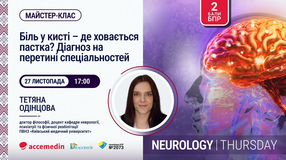 Трансляція майстер-класу «Біль у кисті – де ховається пастка? Діагноз на перетині спеціальностей»